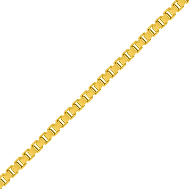 Constituée de maillons carrés et cubiques imbriqués les uns dans les autres, la maille vénitienne est généralement utilisé pour réaliser des chaînes fines. C’est le cas de cette chaîne en or jaune qui soutiendra et mettra en valeur une médaille, même d’un certain poids. Cette chaîne de baptême s’apprécie aussi pour son côté sobre capable de s’assortir avec toutes sortes de médailles et sa solidité. Portée en version ras de cou ou plus longue elle fait toujours autant d’effet, magnifiant l’éclat de l’or sur toute la succession de ses maillons.