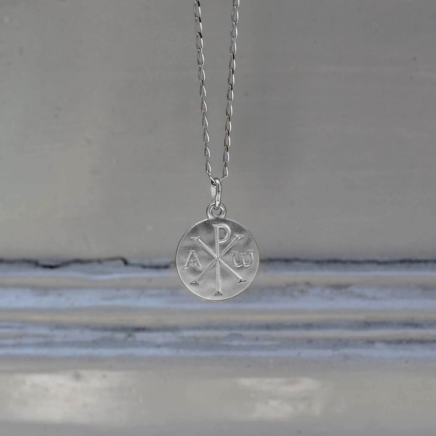 Symbole important de l’Église primitive, le Chrisme est un monogramme qui représente Jésus. Apparu dans les régions orientales de l’empire romain, ce signe est constitué de deux lettres Χ (khi) et Ρ (rhô), les deux premières du mot grec Χριστός (« Christ »). On le retrouve sur cette magnifique médaille en argent massif au milieu des lettres α (alpha) et ω (oméga). Première et dernière lettres de l’alphabet grec, ces dernières font référence à la célèbre phrase du Christ révélée dans l’Apocalypse de Jean : « Je suis l’alpha et l’oméga, le premier et le dernier, le commencement et la fin ». Modèle déposé.
